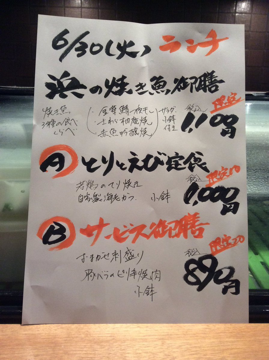 6月30日火曜日ランチメニューです