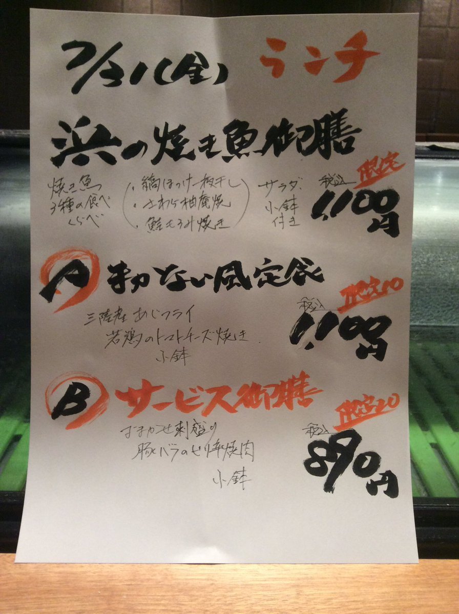 7月31日金曜日ランチメニューです