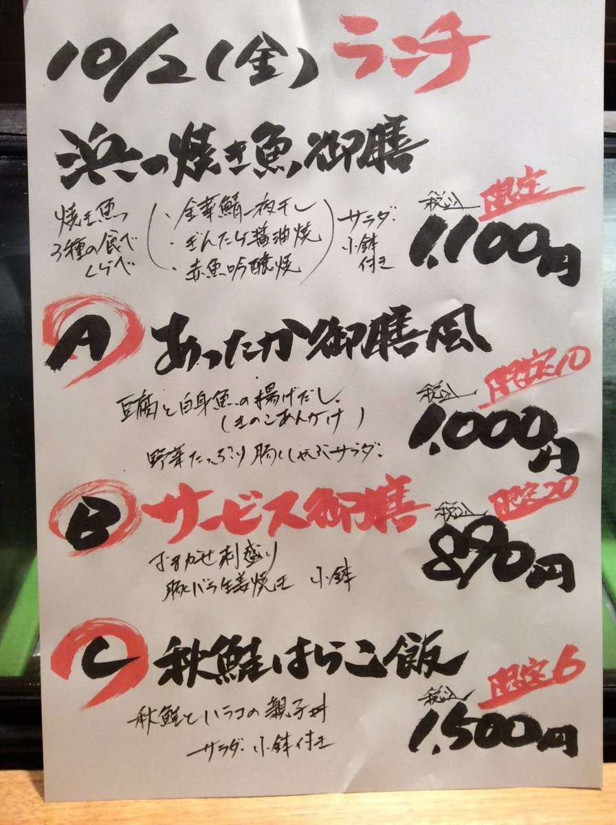 10月2日金曜日のランチメニューです☺️