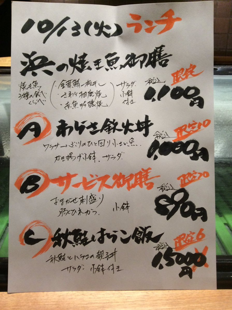 10月13日火曜日ランチメニューです