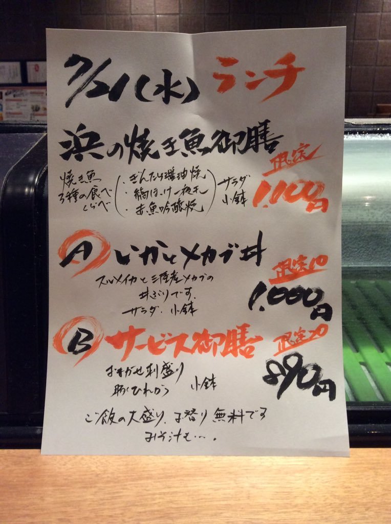 7月21日水曜日ランチメニューです。