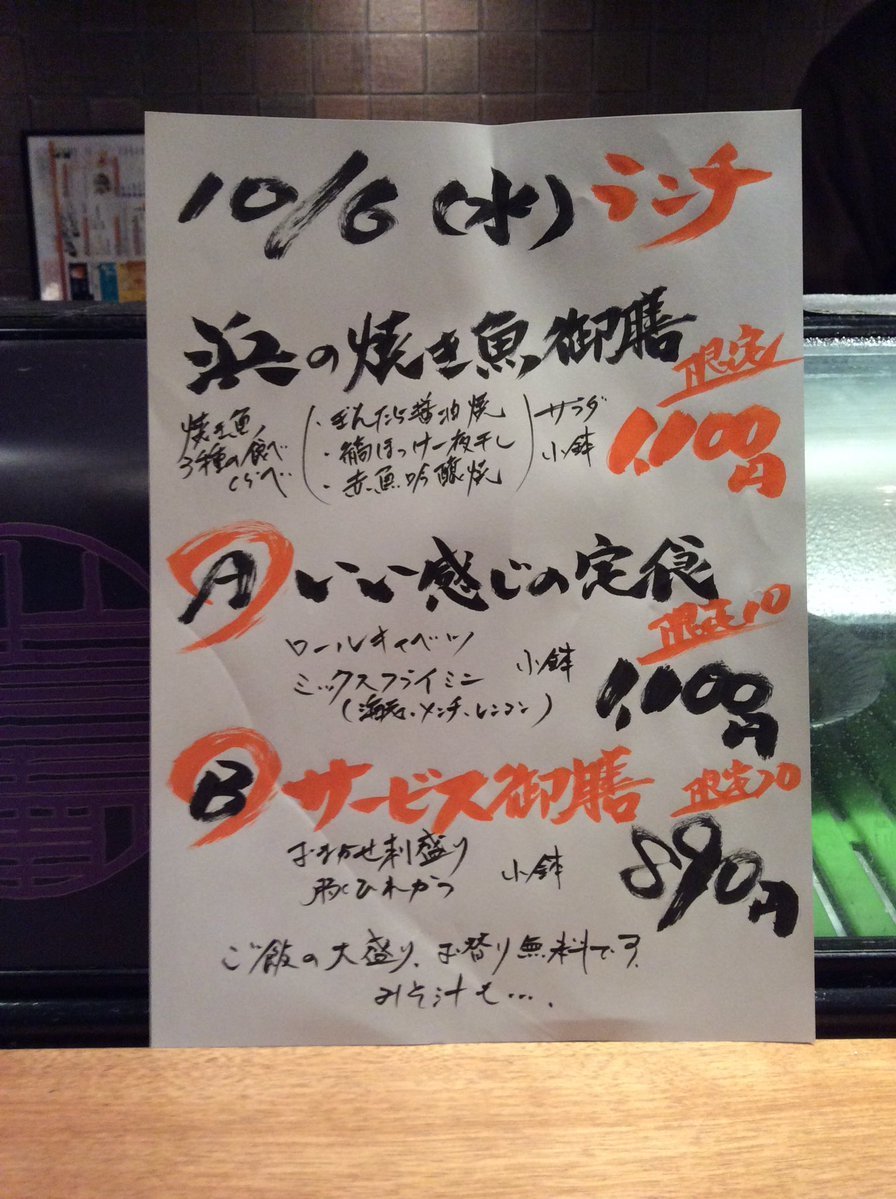 10月6日水曜日ランチメニューです