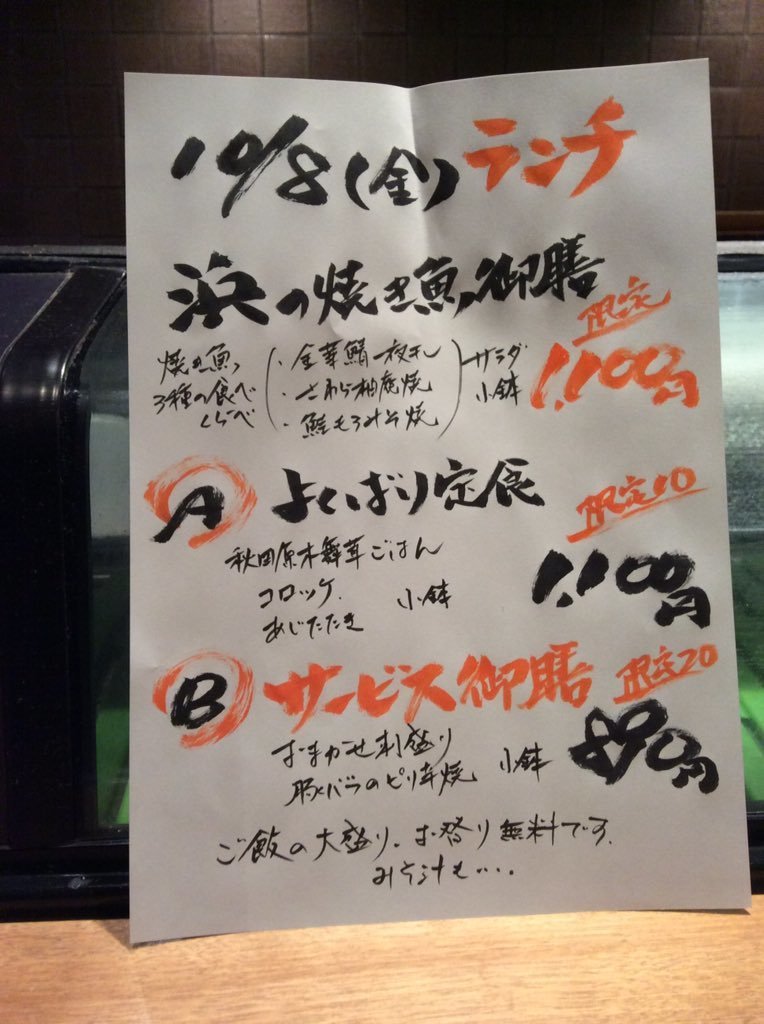 10月8日金曜日ランチメニューです。
