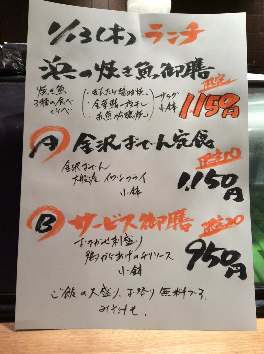 1月13日木曜日ランチメニューです。