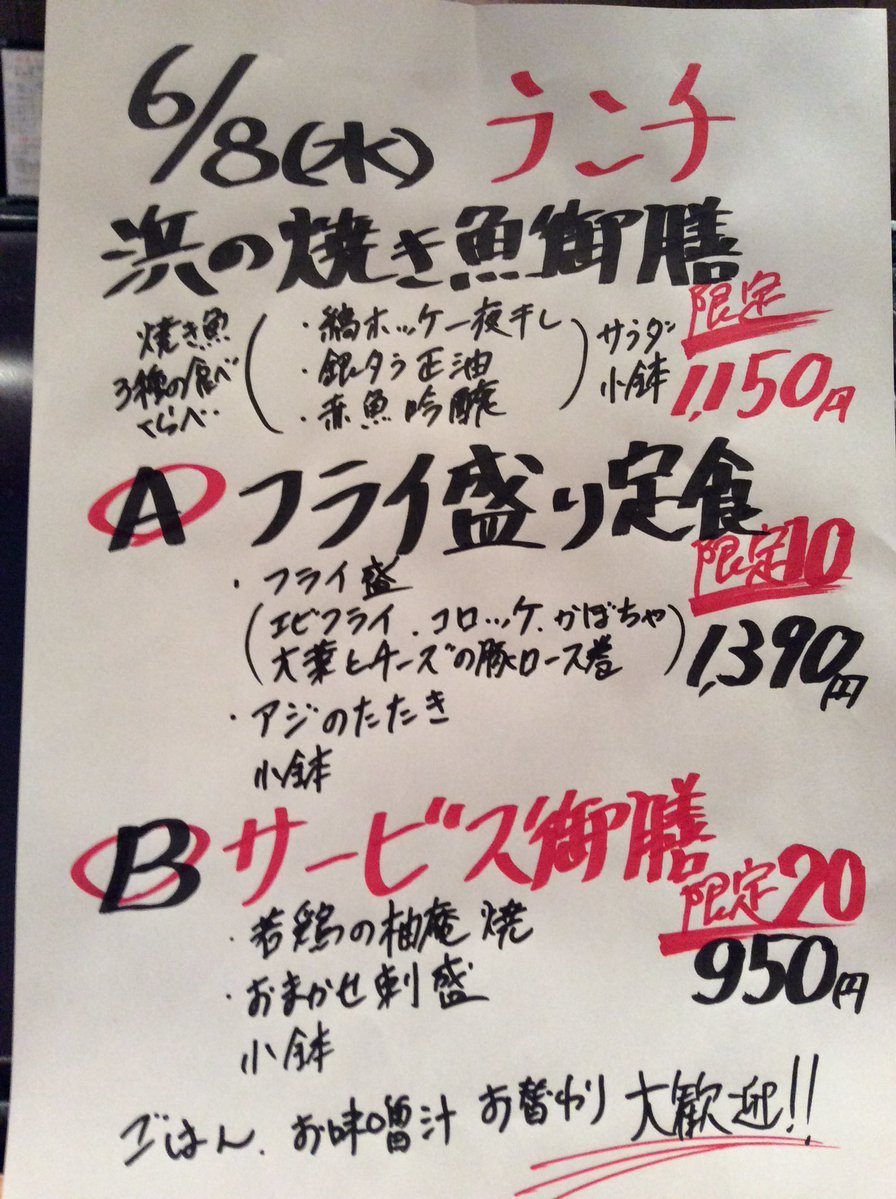 6月8日水曜日ランチメニューです😊
