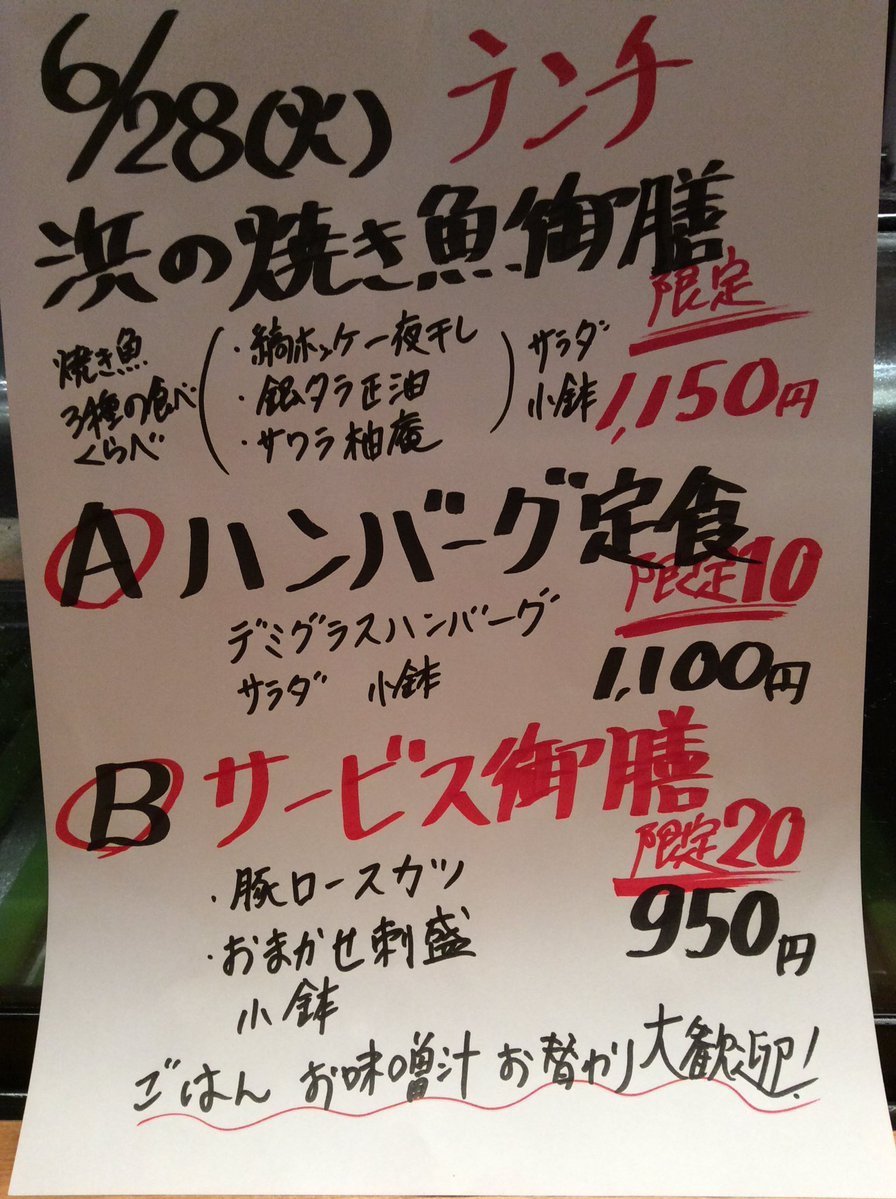 6月28日火曜日ランチメニューです😊