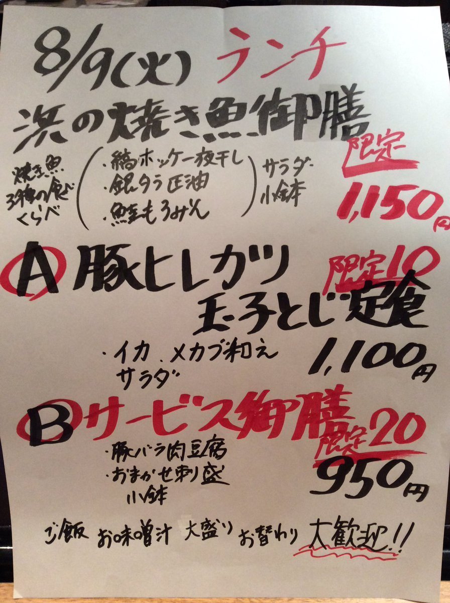 8月9日火曜日ランチメニューです😊