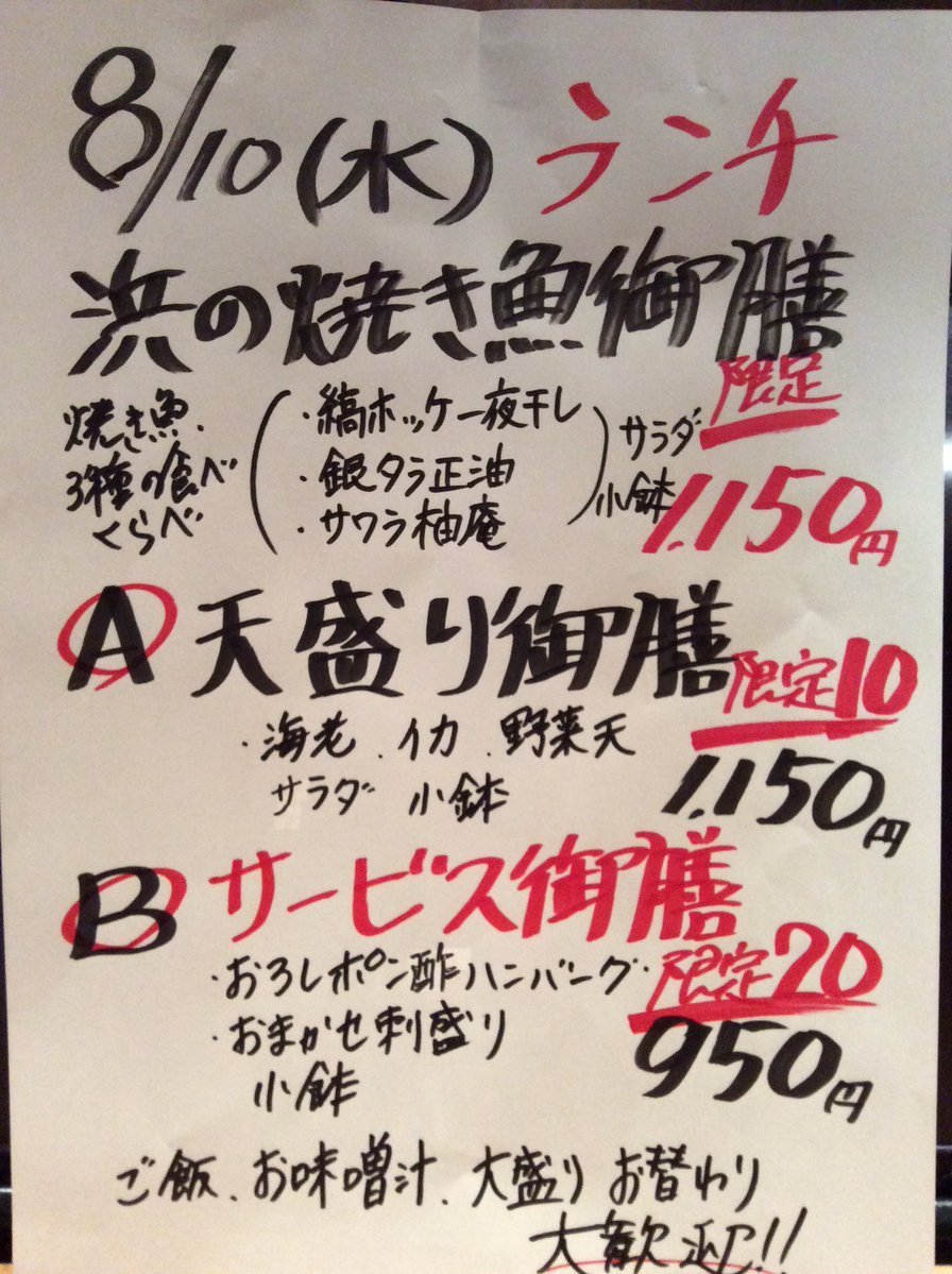 8月10日水曜日ランチメニューです😊