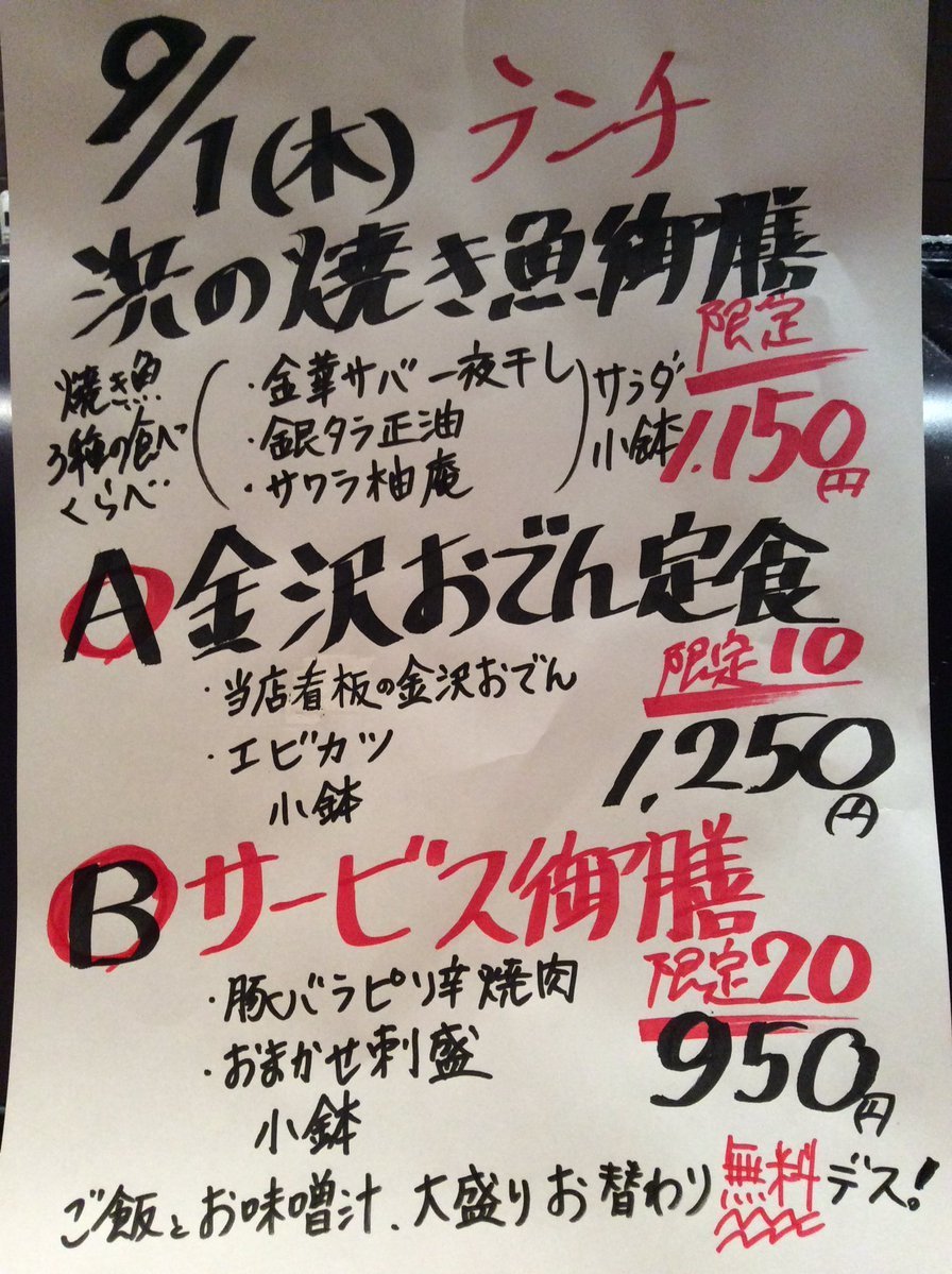 9月1日木曜日ランチメニューです😊