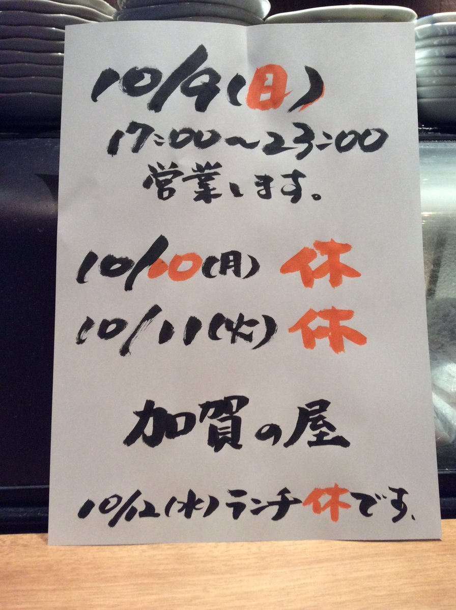 10月9日(日)営業