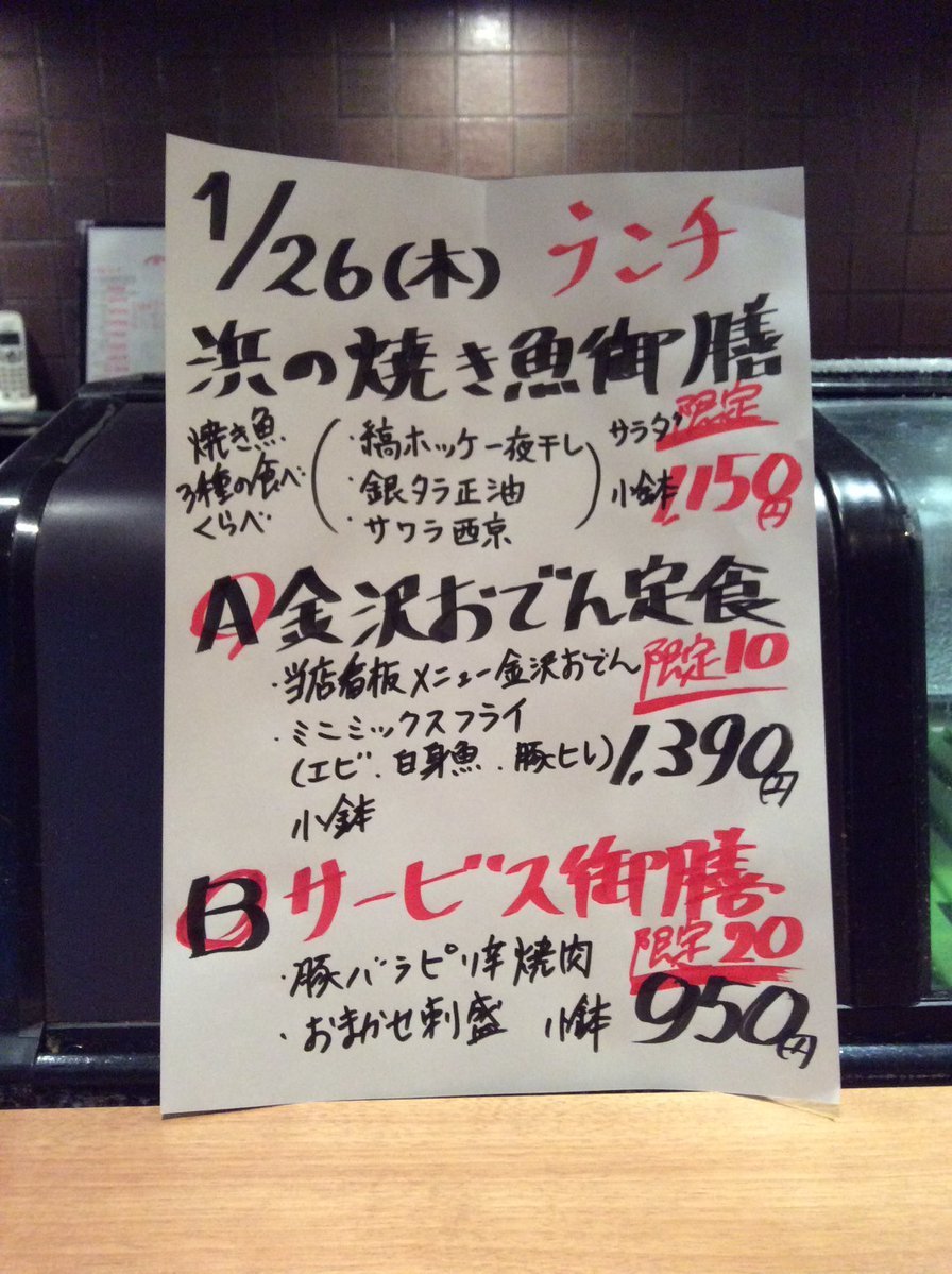 1月26日木曜日ランチメニューです😊